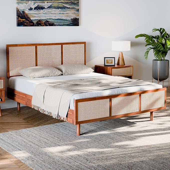 About This HANDCRAFTED GEOMETRIC PATTERN: Our solid wood bed frame queen has a striking geometric headboard that enhances the beauty...