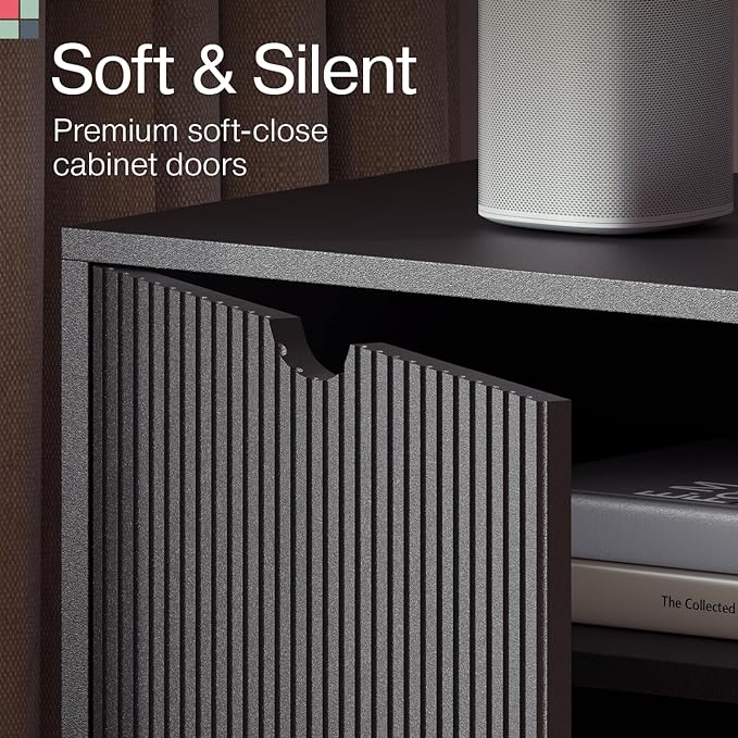 Contemporary Fluted TV Stand - Media Console - 70 Inch Entertainment Center with Storage - Console Table for Living Room and Bedrooms - Supports 32 to 80" TVs - Soft-Close Cabinet Doors (Black)