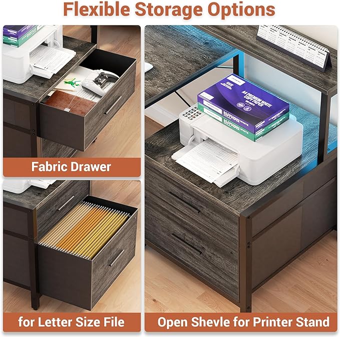About This 【Ample Storage Space】This home office desk with storage offers ample storage solutions, including 2 fabric file drawers, 2-tier...