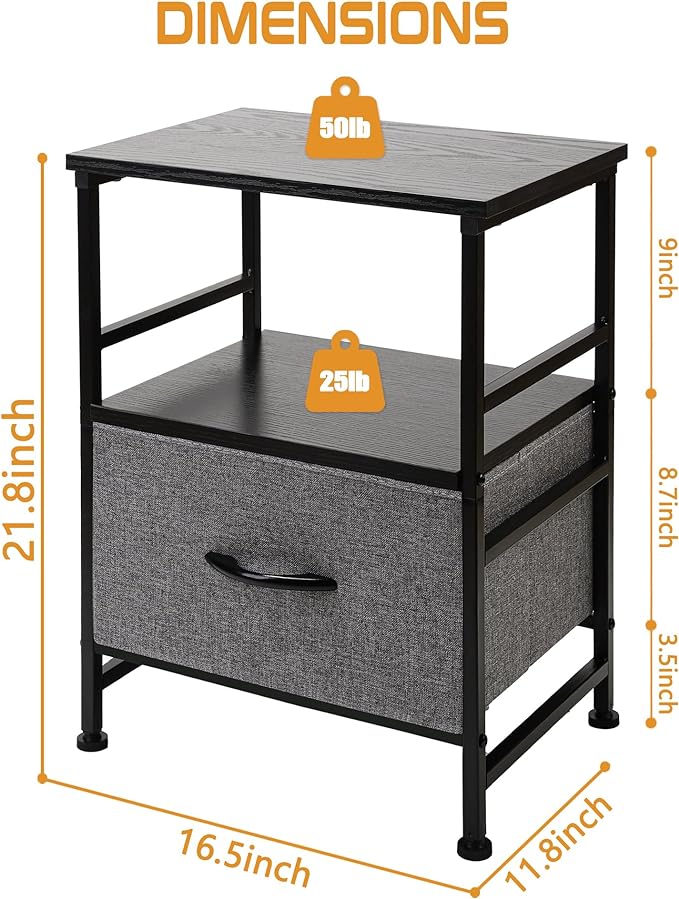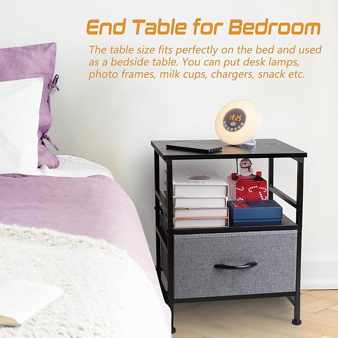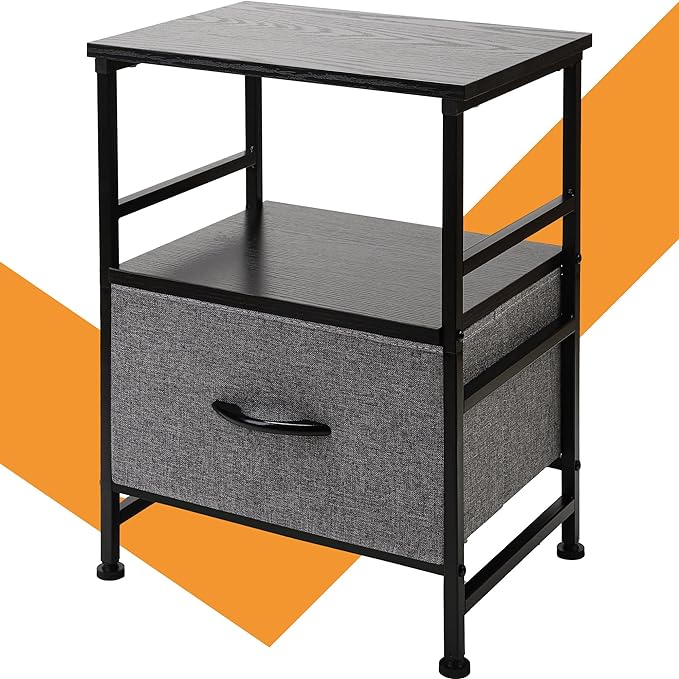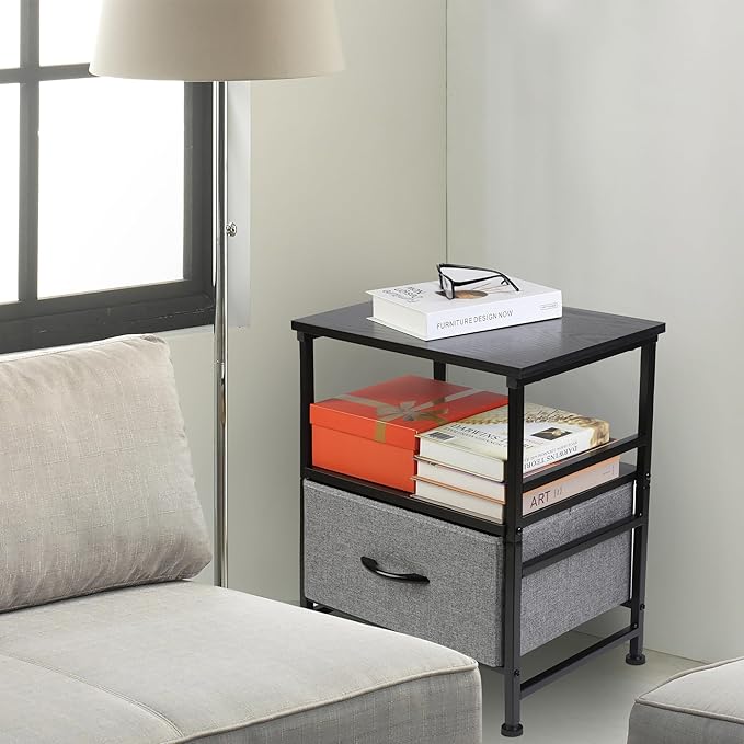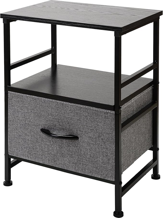 Nightstand,Drawer Dresser for Bedroom,Bedside Tables with Fabric Storage Drawer and Open Wood Shelf,Small Dresser Night Stand,Bedside Furniture,Side Table for Bed Frame,Closet,Dorm,Grey