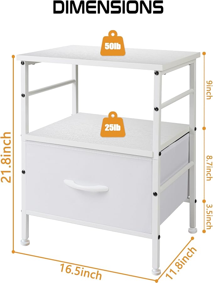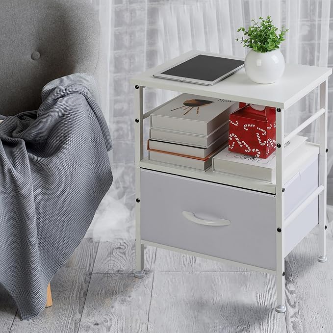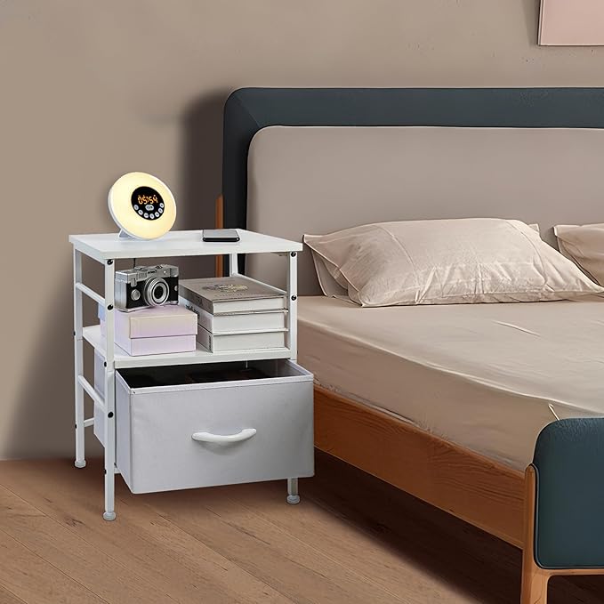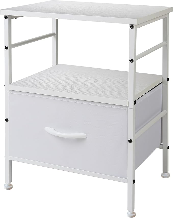 Nightstand,Bedside Tables with Fabric Storage Drawer and Open Wood Shelf,Bedside Furniture,Mesa de Noche with Drawers,Side Table for Bed Frame, Bedroom,Closet,Dorm,White