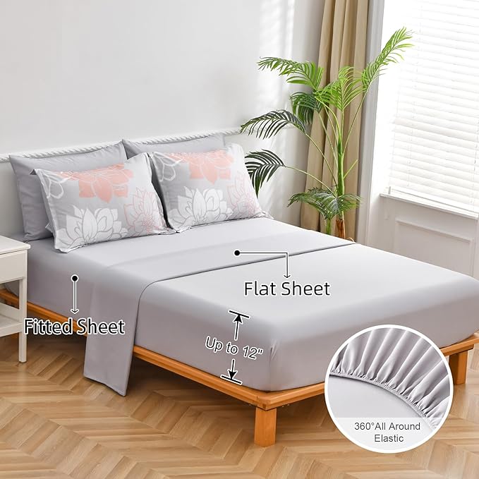 Floral Comforter Set King 7 Piece Bed in a Bag Coral Flower Comforter with Sheet Set Soft Micorfiber Bedding Set (1 Comforter,2 Pillow Shams,1 Flat Sheet,1 Fitted Sheet,2 Pillowcases)