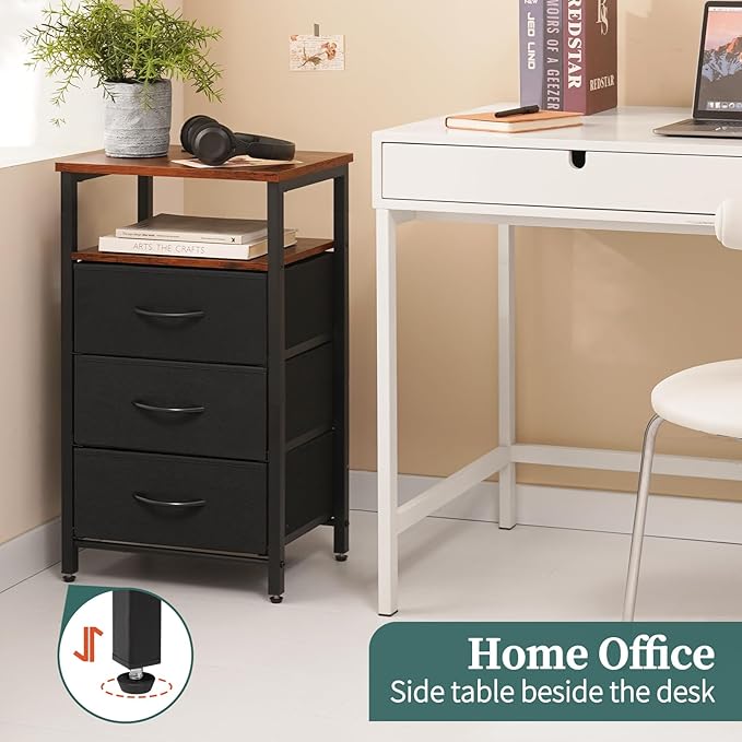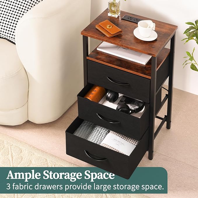 Yoobure Night Stand with Charging Station, 16 Colors LED Nightstand with USB Ports and Outlets, End Table with 3 Fabric Drawers and Storage Shelf, Bedside Tables Small Dresser for Small Space