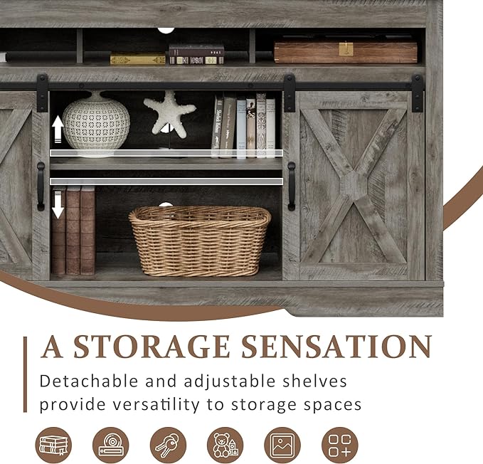 About This HUMANIZED DESIGN: Sliding barn doors and their flexibility allow easy access to all console. You can adjust barn...
