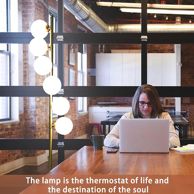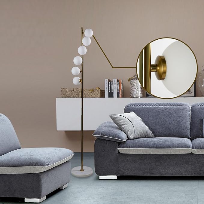 6 Globe Gold Mid Century Floor Lamp Glass Shade Antique Brass Modern Floor Lamps Contemporary Tall Pole Standing Lamp for Living Room Bedroom 3ColorTemperatures