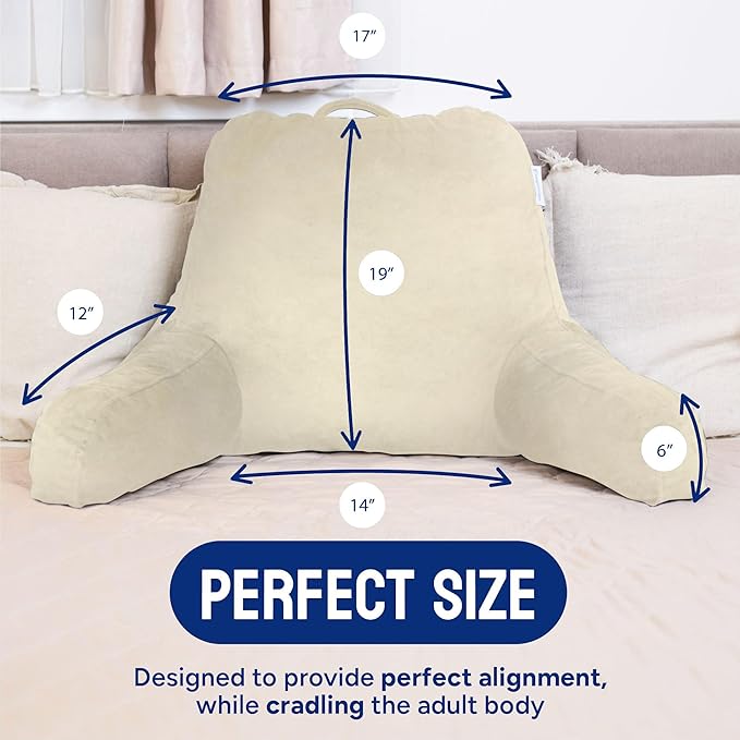 ComfortSpa Reading Pillow for Bed Adult Size, Back Rest Pillow with Arms, Pockets and Washable Cover; Use as a Back Pillow for Sitting in Bed for Bedrest or Relief from GERD Heartburn (Cream)