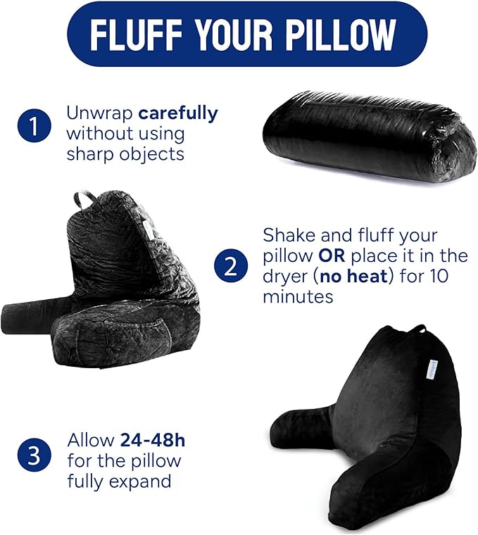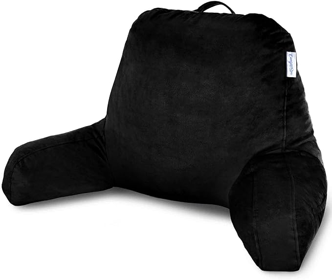ComfortSpa Reading Pillow for Bed Adult Size, Back Rest Pillow with Arms, Pockets and Washable Cover; Use as Bed Pillows for Sitting Up in Bed for Bedrest or Relief from GERD Heartburn (Black)