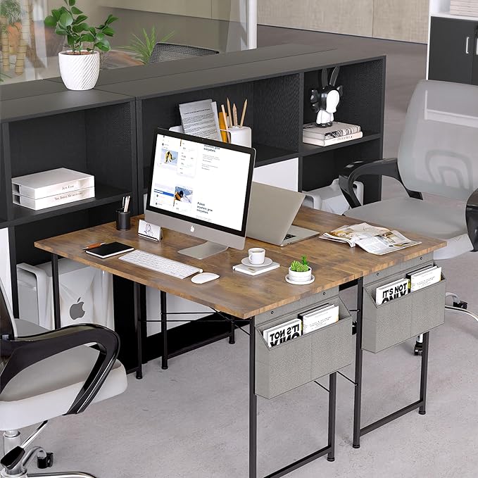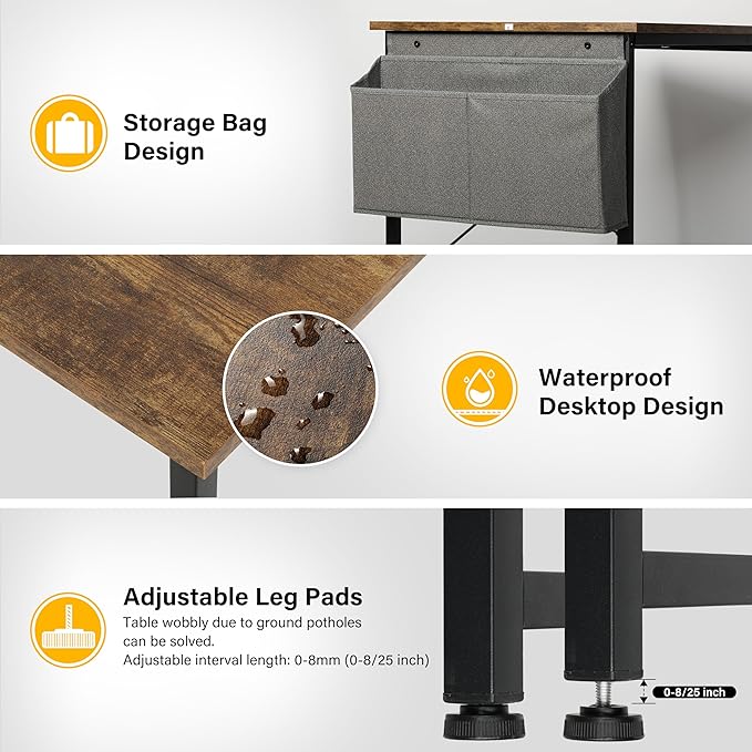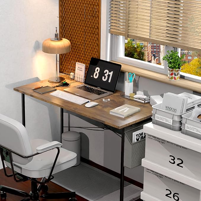 HealSmart 32/40/47 Home Office Writing Small Desk, Modern Simple Style PC Table with Storage Bag, 47 Inch, Brown/47 inch New Version
