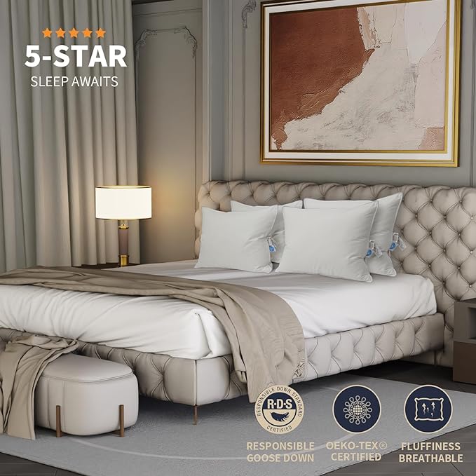 About This 【100% Goose Down Pillow】This high-fill rate goose down pillow is filled with special high-grade goose feathers. It is...