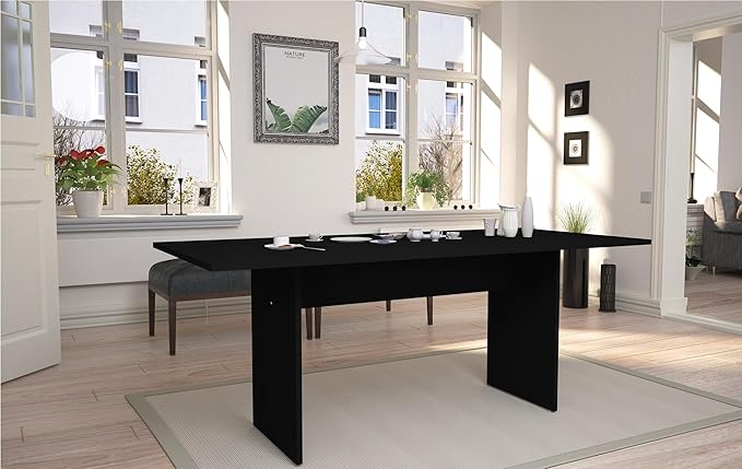 Manhattan Comfort Nomad Dining Table for 4 to 6, Modern Rustic Farmhouse Statement Furniture Piece with Protouch Wood Grain Finish, Sturdy H-Base Pedestal Design, Easy Assembly, 67.91", Black