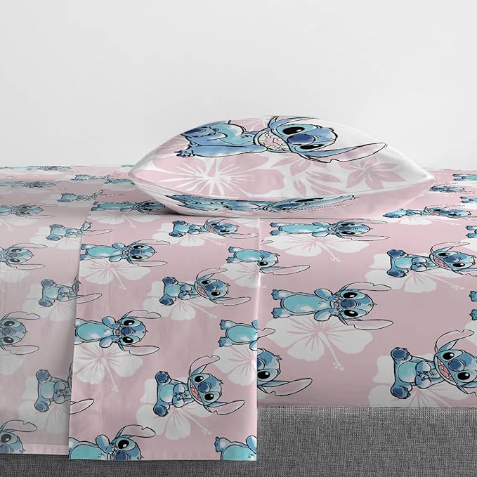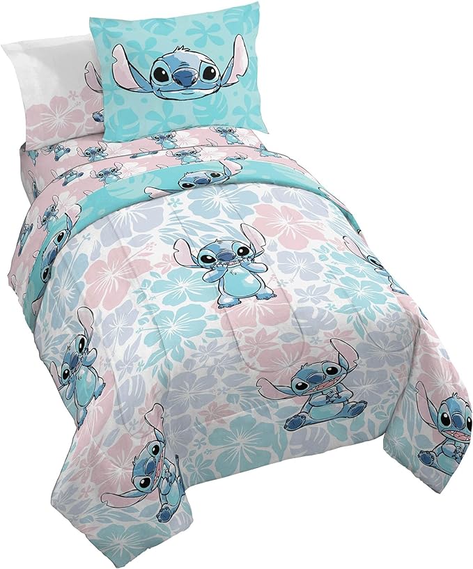 Jay Franco Disney Lilo & Stitch Twin Comforter Set - 5 Piece Bedding includes Sheet Set & Pillow Covers - Super Soft Kids Floral Bedding