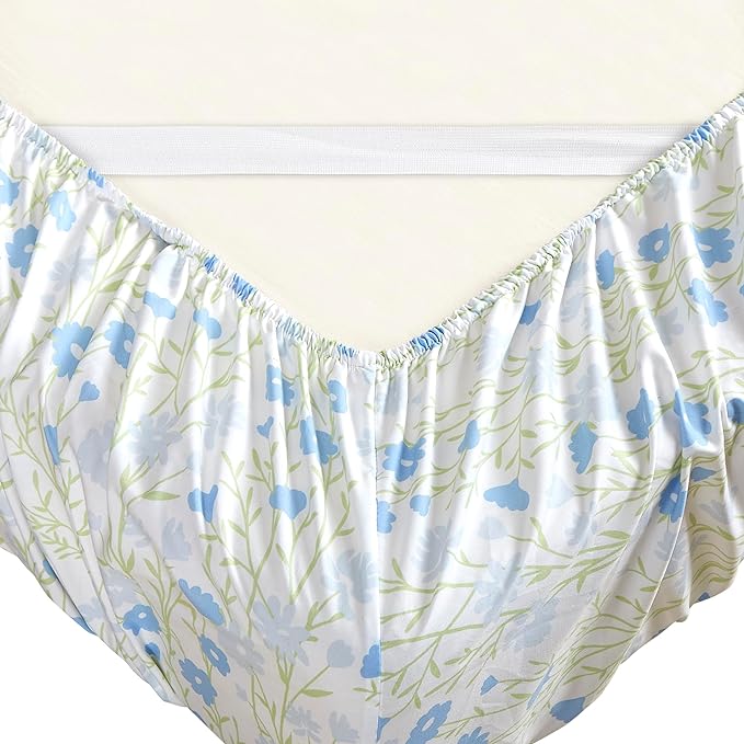 Elegant Comfort Softest and Coziest 4-Piece Sheet Set - 1500 Premium Hotel Quality Microfiber - Deep Pocket, Wrinkle Resistant 4-Piece Floral Bed Sheet Set, Twin, Laurel Blue