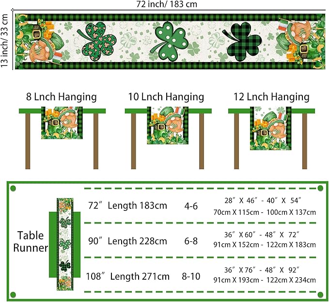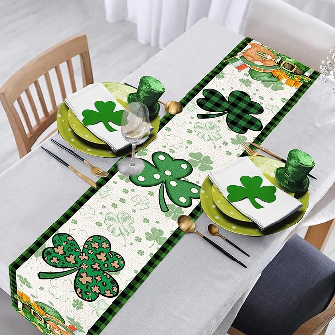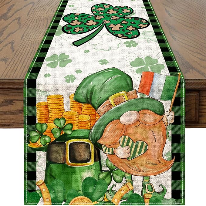 St Patricks Day Table Runner 72 Inches Long Gnome Shamrock Table Runner Happy Saint Patrick’s Day Decor for Kitchen Dining Table Home Party Decorations