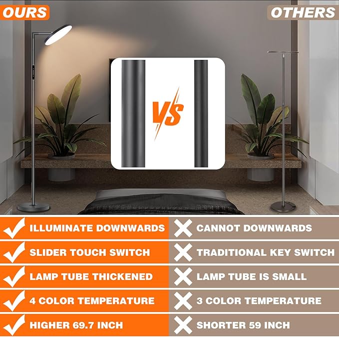 LED Dimmable Floor Lamp for Living Room, 69" Tall Lamp with Remote & Touch Control Upgrade Lamp Pole Rotary 90° Brightness 4 Color Temperature Standing Lamp for Bedroom/Office