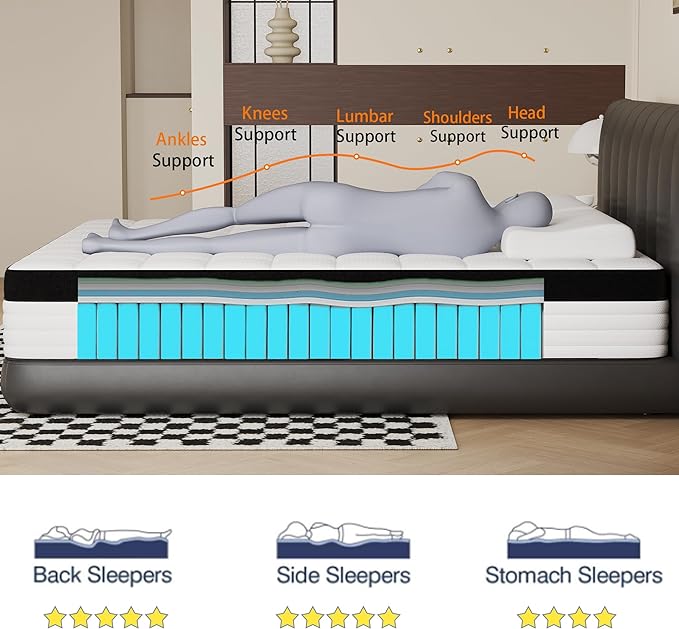 King Size Mattress, 10 Inch Hybrid King Mattress in a Box, Medium Firm Memory Foam and Pocket Springs, 3 Coils Strong Edge Support, Pressure Relief