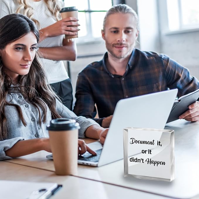 Funny Office Decor for HR - Document It or It Didn't Happen, Square Clear Acrylic Gift - Home Bedroom Office Desk Decor for Shelves Office 4 x 4 inches