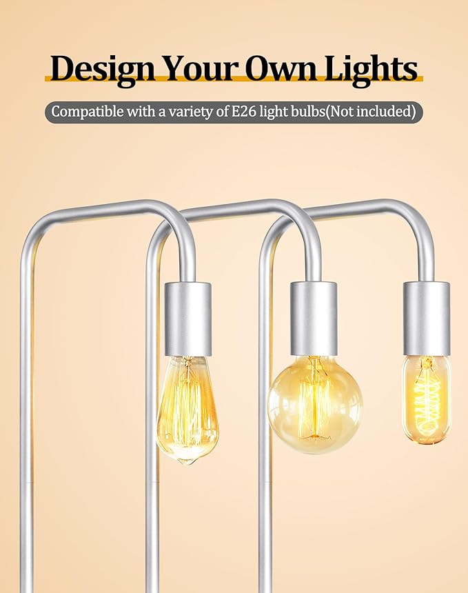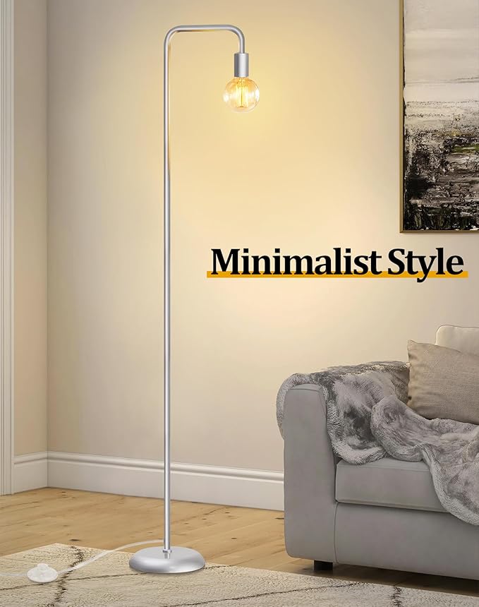 QiMH Industrial Floor Lamp for Living Room, Farmhouse Metal Standing Lamp, Modern Tall Lamp for Bedroom Office Minimalist Floor Lamps Home Decor(E26 Socket, Foot Switch) (Silver)