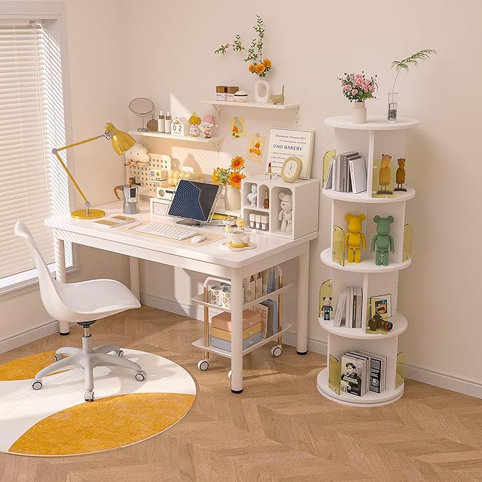 VECELO Rotating Bookshelf, 4-Tier Small Corner Display with Acrylic Window, Ideal Storage Solution for Kids and Adults in Bedrooms, Living Rooms, Space Efficient and Elegant White Design