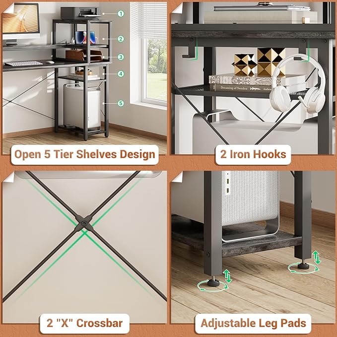 About This šš®šŗš¶š»š“ šš²ššø šš¶ššµ š¦šµš²š¹šš²š: iSunirm 47 inches gaming desk has 5-tier shelves that provide ample storage space while...