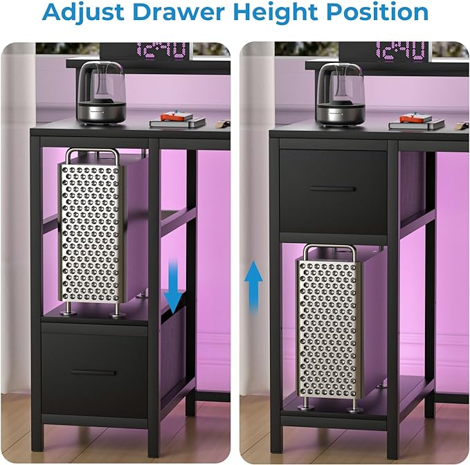 GreenForest Computer Desk with Drawers 47 inch,Gaming Desk with LED Lights & Power Outlets Small Desk with Monitor Stand and Reversible Shelf,Black