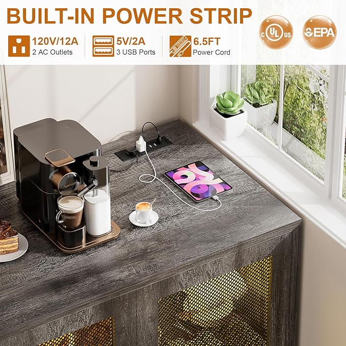 About This 【Buffet Cabinet with Charging Station】Our kitchen storage cabinet is equipped with 2 Outlets& 3 USB ports, providing great...