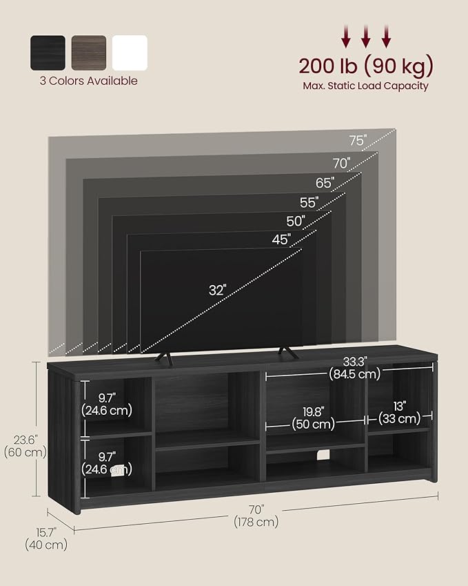 VASAGLE TV Stand for TVs up to 75 Inches, Entertainment Center with Storage Shelves, TV Console Table, Easy to Assemble, TV Cabinet for Living Room, Bedroom, Ash Black ULTV112B01