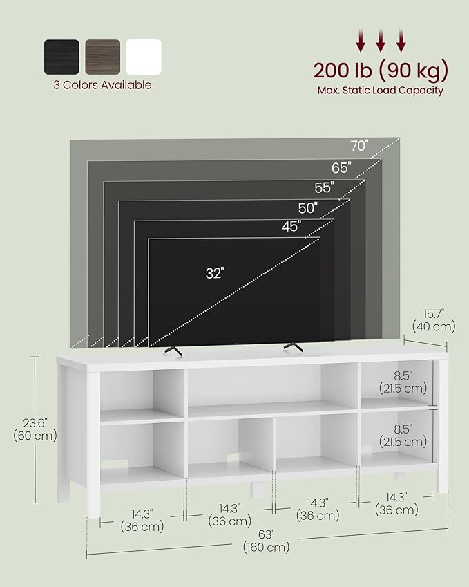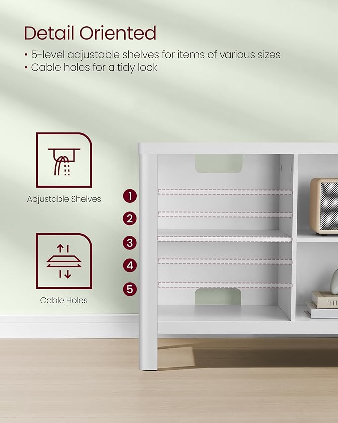 VASAGLE TV Stand for TVs up to 70 Inches, Entertainment Center with Storage Shelves, TV Console Table, Easy to Assemble, TV Cabinet for Living Room, Bedroom, Cloud White ULTV114W01