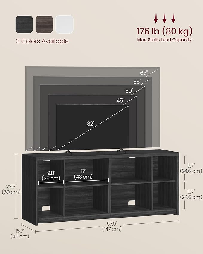 VASAGLE TV Stand for TVs up to 65 Inches, Entertainment Center with Storage Shelves, TV Console Table, Easy to Assemble, TV Cabinet for Living Room, Bedroom, Ash Black ULTV111B01