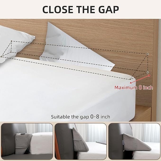 Bed Wedge Pillow for Headboard, Queen Size Headboard Pillow, Bed Gap Filler Close Gap (0-8") Between Mattress and Headboard (Queen)