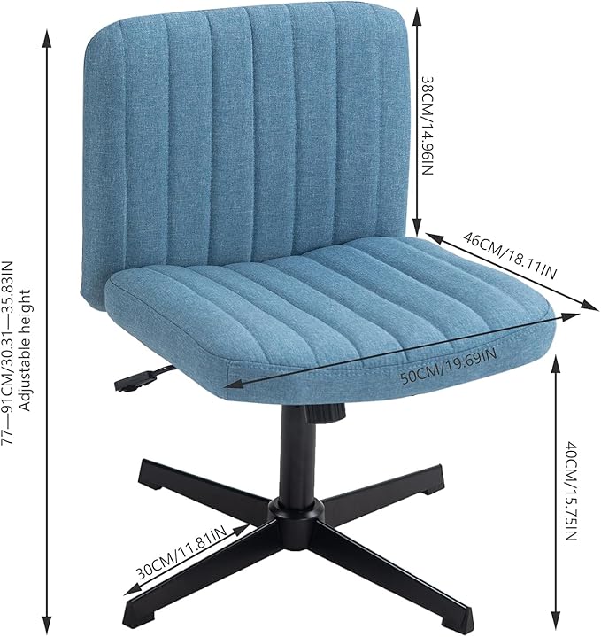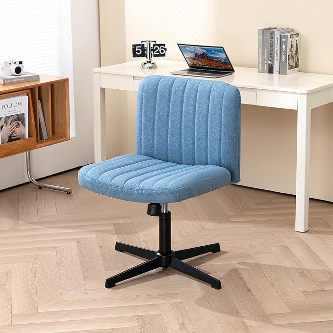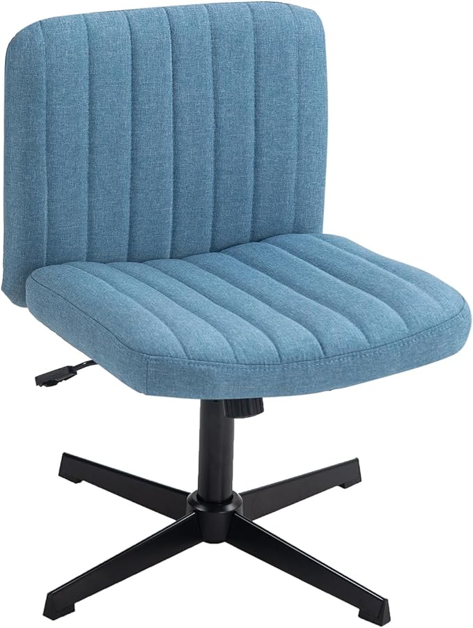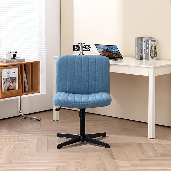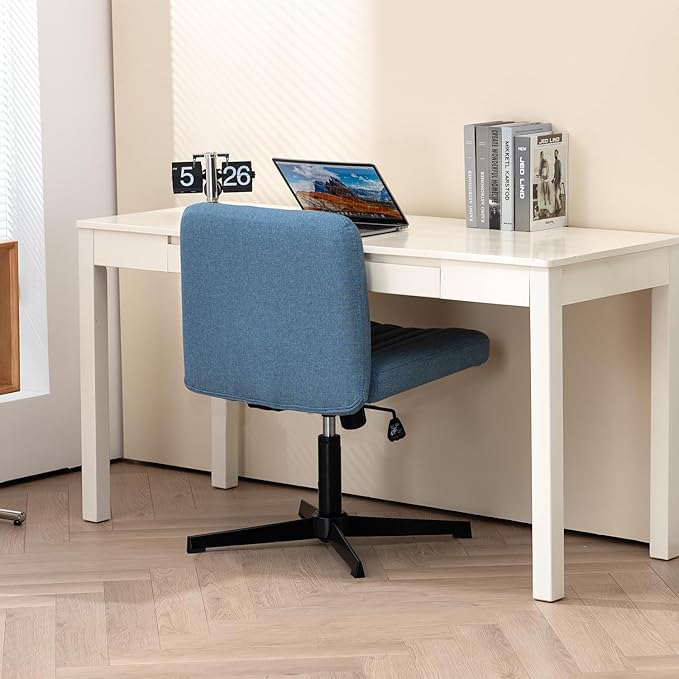 Panana Office Chair Fabric Padded Seat Armless Desk Chair Swivel Computer Task Chair Mid-Back No Wheels Accent Chair (Blue)
