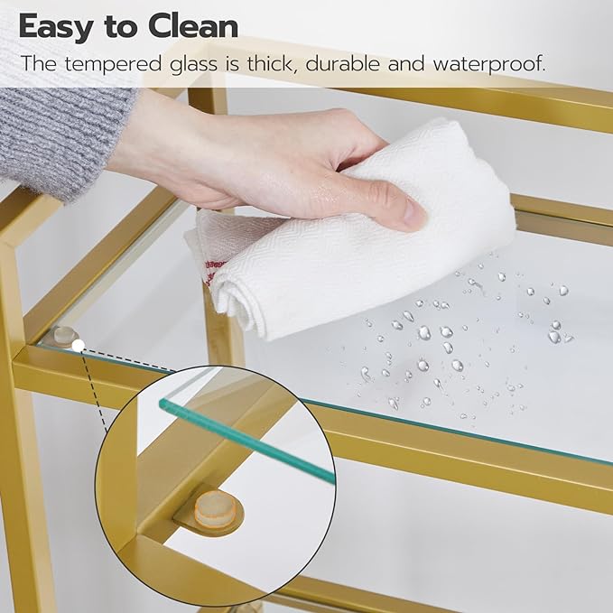 HOOBRO 5-Tier Gold Bookcase, Tempered Glass Bookshelves, Slim Shelving Unit for Living Room, Narrow Bookshelf for Small Spaces, Storage Rack Display Shelf for Home Office, Gold GD45SJ01