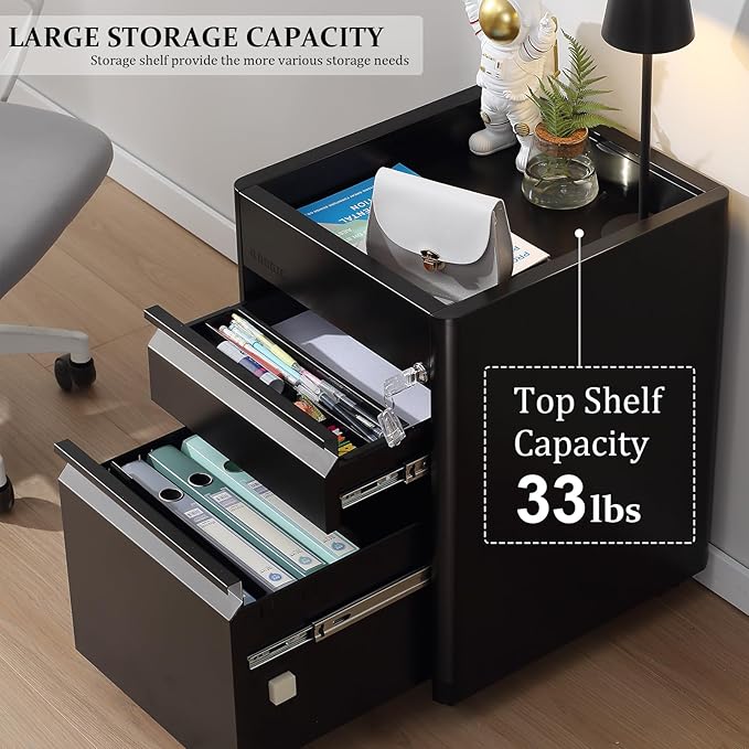 2 Drawer Mobile File Cabinet Top Storage Shelf, Rolling Metal Filing Cabinet for Legal & Letter File Anti-tilt Design with Lock Under Desk Office Drawers Fully Assembled Except Casters(Top ST B)