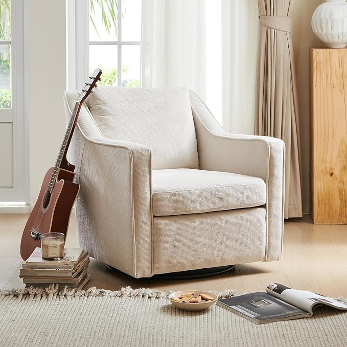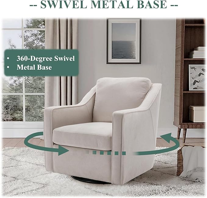 COLAMY 360° Swivel Accent Chair, Upholstered Fabric Leisure Armchair with Innerspring Seat Cushion Lumbar Pillow Metal Base for Living Room Bedroom Home Office, Beige