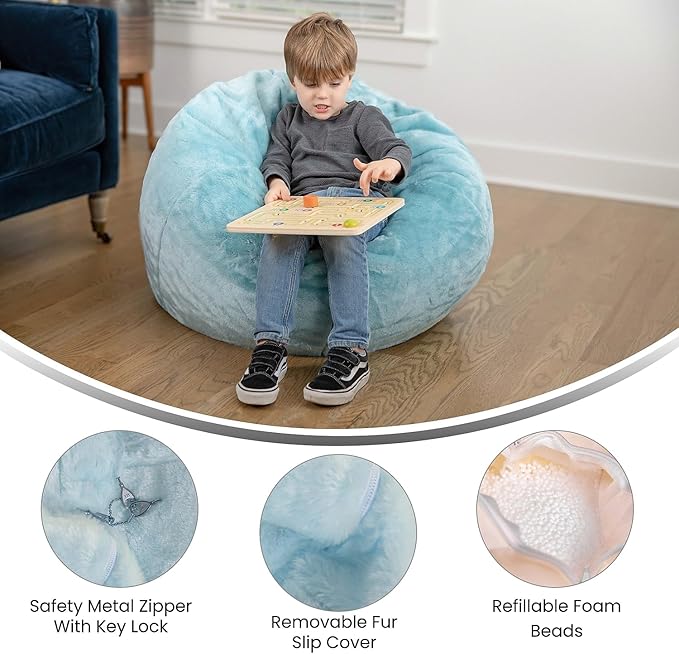 Flash Furniture Dillon Small Teal Furry Bean Bag Chair for Kids and Teens