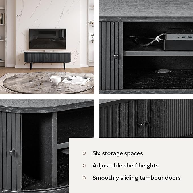 55’’ Black TV Stand with Storage and Shelves designed to fit 32’’ - 60’’ TVs. Black Wood Entertainment Center for Living Room and Bedroom, Media Console and Modern TV Console Table (Black Oak)