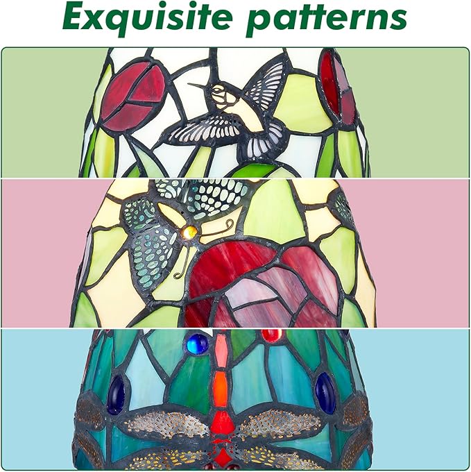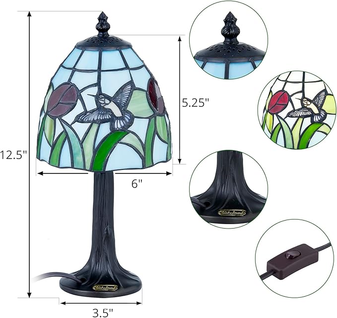 About This HANDCRAFTED- This charming hummingbird mini table lamp is handcrafted with 90pcs stained glass cuts and 3 sets hummingbird...