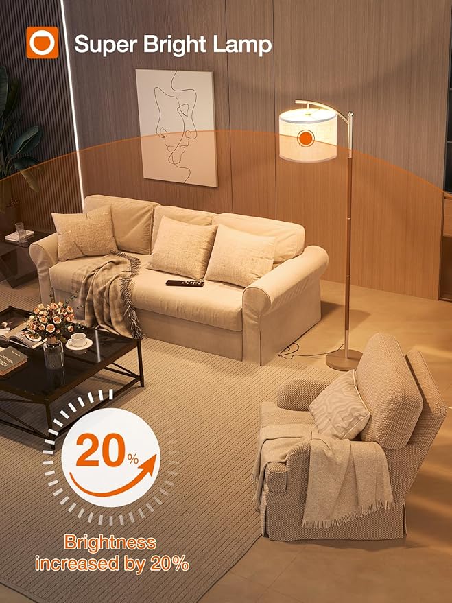 addlon Floor Lamp for Living Room with Remote, Dimmable Standing lamp with Linen lampshade for Bedroom, Office, Lamps with 9W LED Bulb Included - Brown & Nickel with Beige Shade