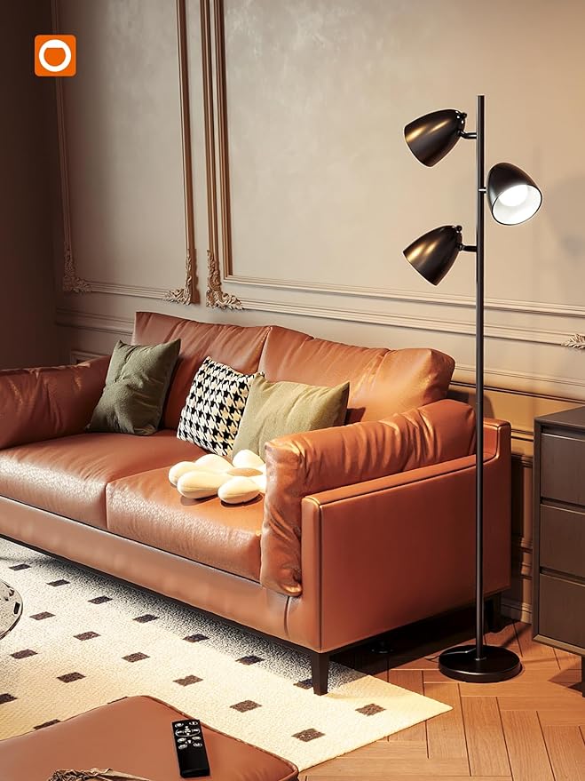 addlon Tree Floor Lamp with remote, 3 Adjustable Rotating Light and Matching LED Bulbs, Standing Tall Pole Lamps for Living Room, Bedroom, Home, Office - Black