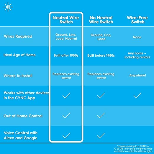 GE CYNC Smart Light Switch, Paddle Style, Neutral Wire Required, Bluetooth and 2.4 GHz Wi-Fi 4-Wire Switch, Compatible with Alexa and Google (6 Pack), White