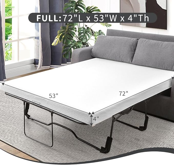 4Inch Memory Foam Sofa Bed Replacement Mattress for Full Size Sleeper Sofa & Couch Beds - Made in USA - Washable Material/Non-Slip Base - Sofa Not Included - 72”L x 53”W x 4”H