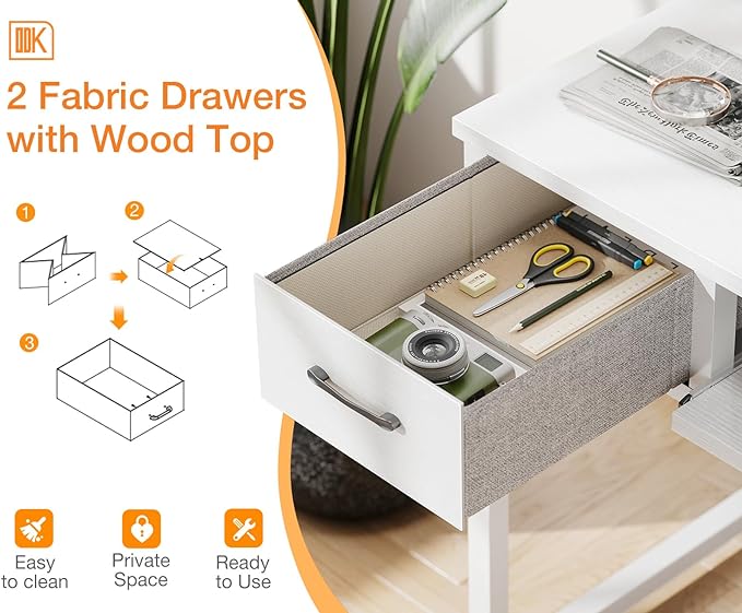 ODK White Computer Desk with Drawers, 48 Inch Office Desk with Power Outlet, PC Desk with Keyboard Tray, Study Table Work Desk with Monitor Shelf, Writing Desk for Home Office, White