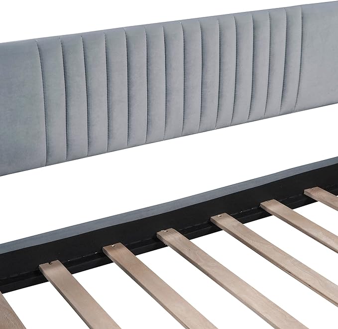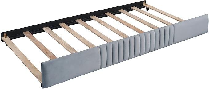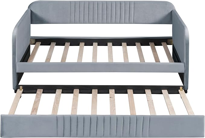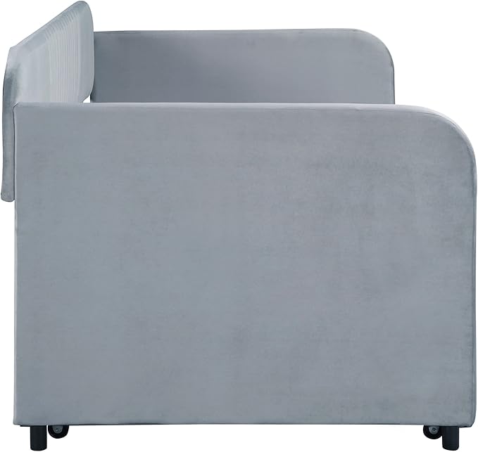 Upholstered Twin Size Daybed with Trundle, Backrest and Armrests, Modern Velvet Day Bed Frame for Bedroom Guestroom Living Room, Wood Slats Support, Gray