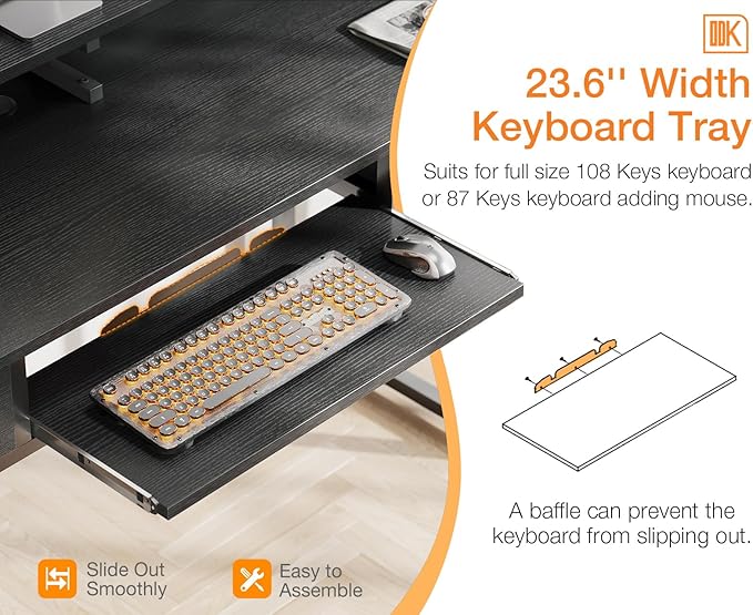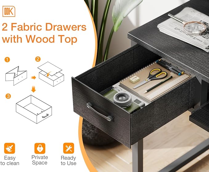 ODK Computer Desk with Drawers, 48 Inch Gaming Desk with Power Outlet, Office Desk with Keyboard Tray, Study Table Work Desk with Monitor Shelf, Writing Desk PC Desk for Home Office, Black