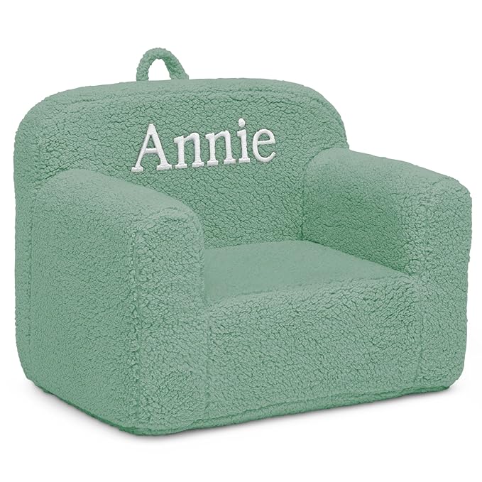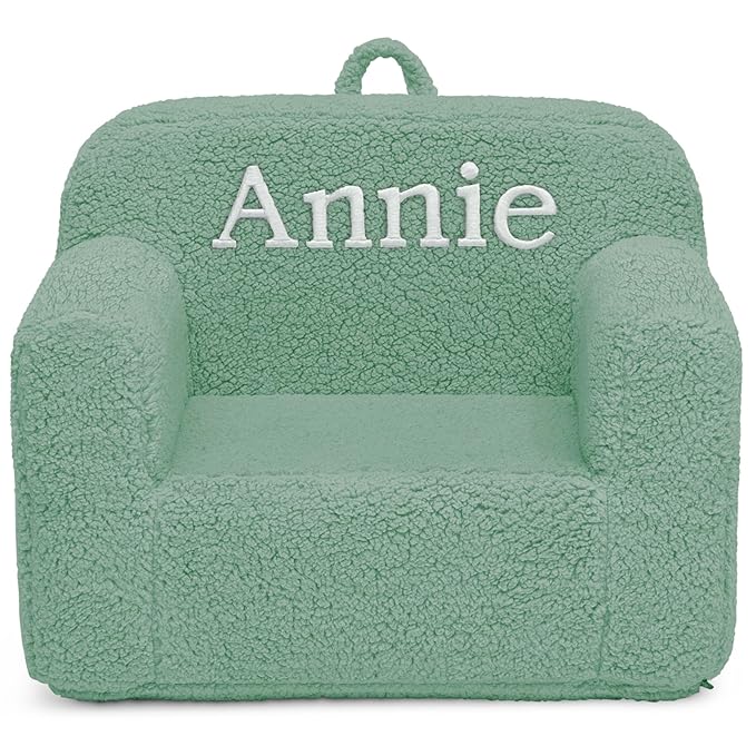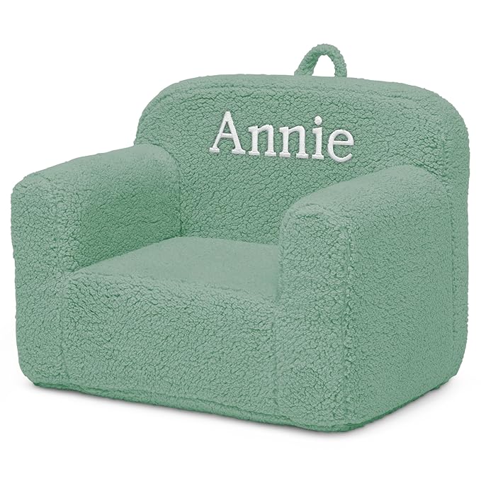 Delta Children Personalized Sherpa Cozee Chair - Customize with Name – Foam Kids Chair for Ages 18 Months and Up, Sage
