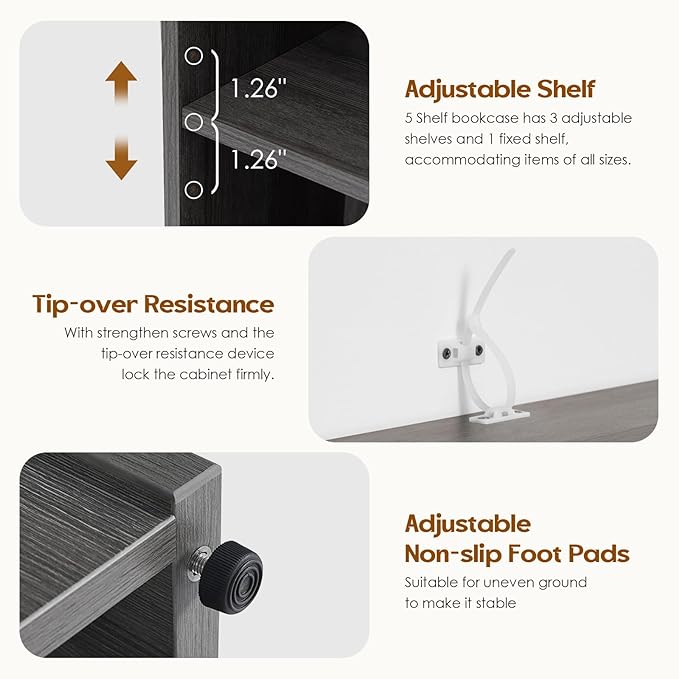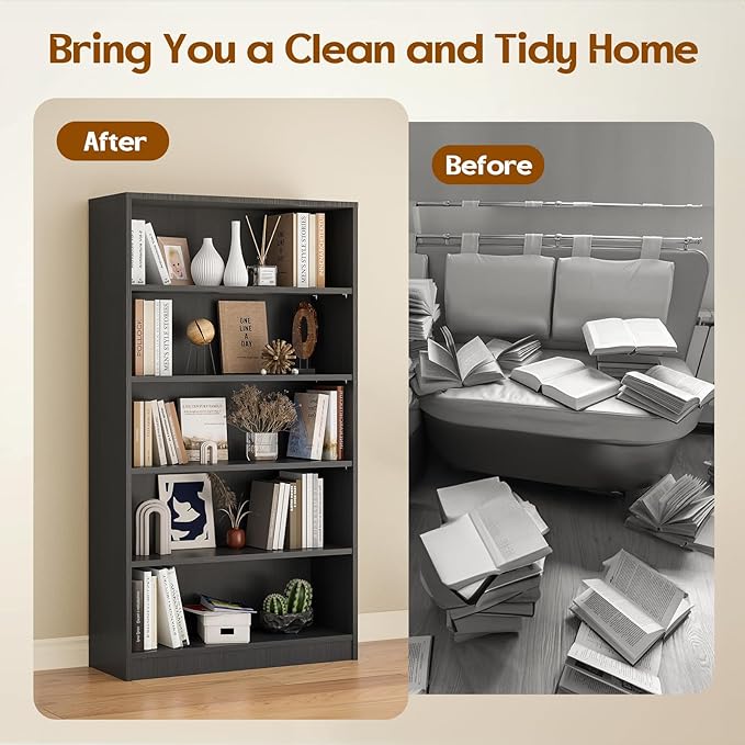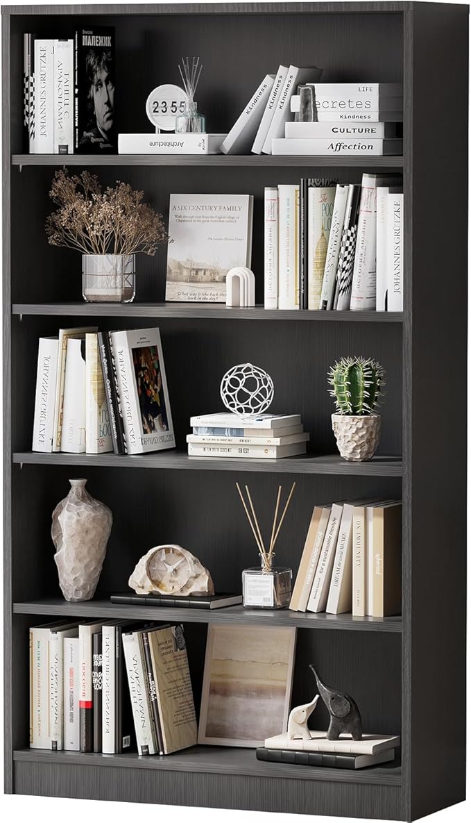 Soohow Grey Bookcase,Bookshelf for Bedroom,60 inches Tall Wood Book case Book Shelves,5 Shelf Book Shelves for Living Room Office