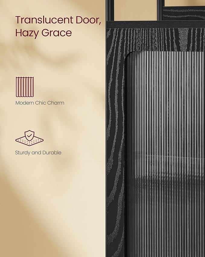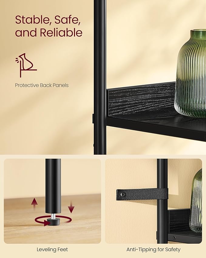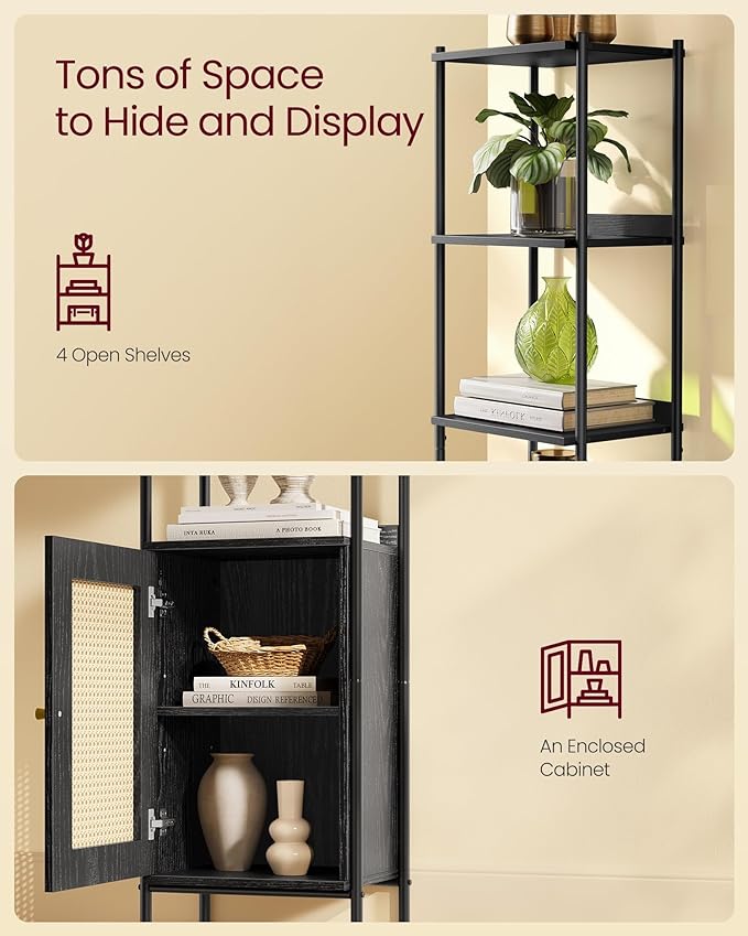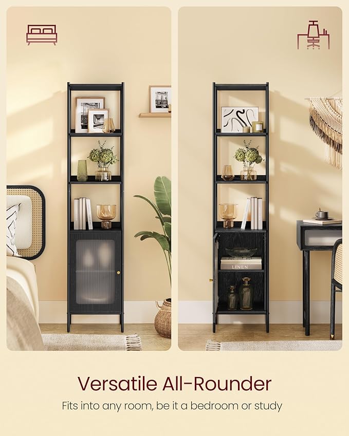 VASAGLE 6-Tier Bookcase, Slim Bookshelf with PC Door, Freestanding Storage Shelf with Metal Frame, Adjustable Shelf, for Living Room, Ebony Black and Matte Black ULLS123B56