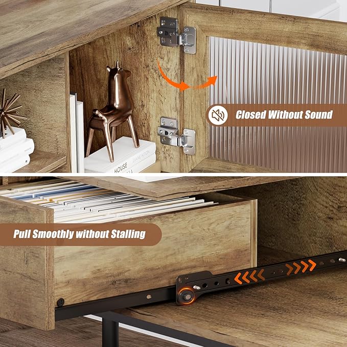 About This ❤️【ATTRACTIVE DESIGN】This mid-century modern tv stand has smooth and simple lines. The corrugated acrylic door for 65 inches...