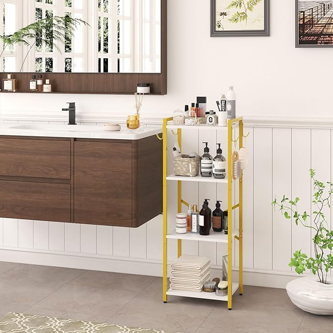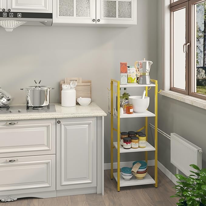 YMYNY Bookcase, 4-Tier Narrow Ladder Bookshelf, Freestanding Shelving Unit, Multifunctional Storage Rack, for Home Office Living Room Bedroom Kitchen, Plant Stand, White, 44 * 16.9 * 11.4" HBC004W