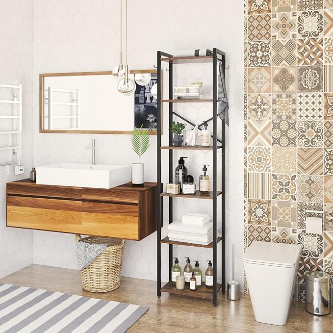 YMYNY Bookshelf, 6-Tier Ladder Shelf Organizer, Narrow Shelving Unit, Corner Storage Racks, Large Capacity Bookcase, for Home Office Living Room Balcony Bathroom, Metal Frame,HBC001H