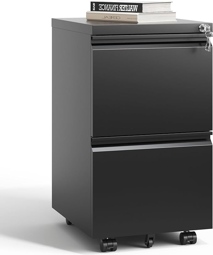 2 Drawer Mobile File Cabinet with Lock,Under Desk Metal Filing Cabinet for Home Office,Steel Small Rolling File Cabinet with 2 Keys for Legal/Letter/A4 Size Fully Assembled Except Wheels (Black)